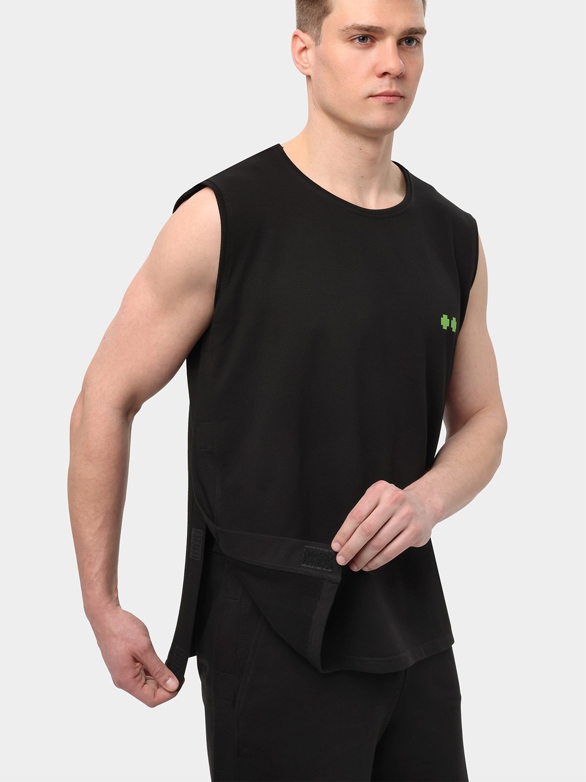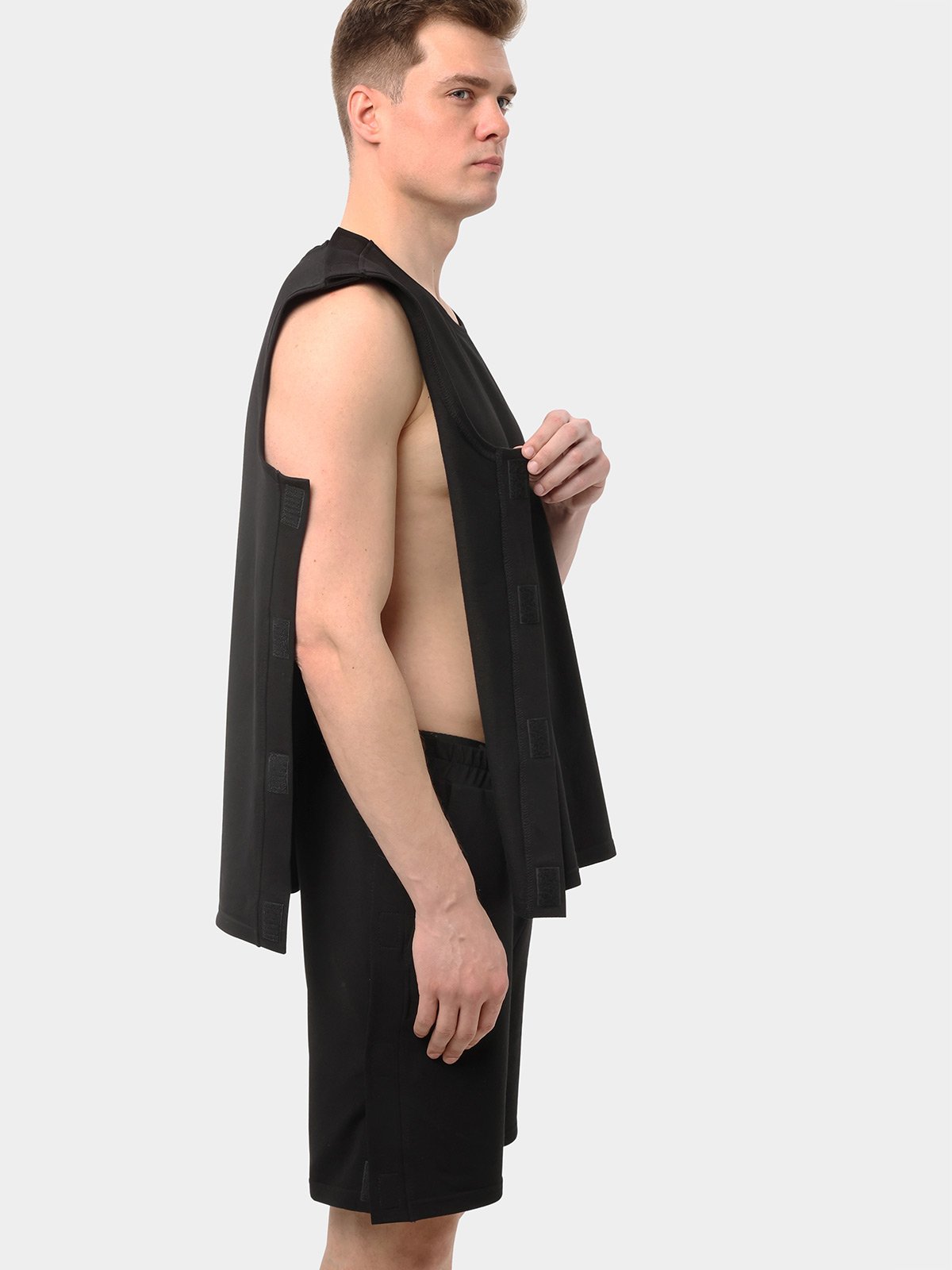 Адаптивная мужская майка на липучках для лечения взрослых лежачих больных, раненых военных, пожилых людей, а также для пациентов больниц и госпиталей, которые проходят реабилитацию и восстановление после операций, ранений, преломов рук и прочих травм.